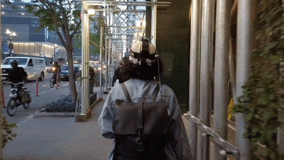 S: By using technology as a mediator between the individual and the built environment, I created a research tool to collect my body responses as I walk in the city of New York, specifically under scaffoldings.