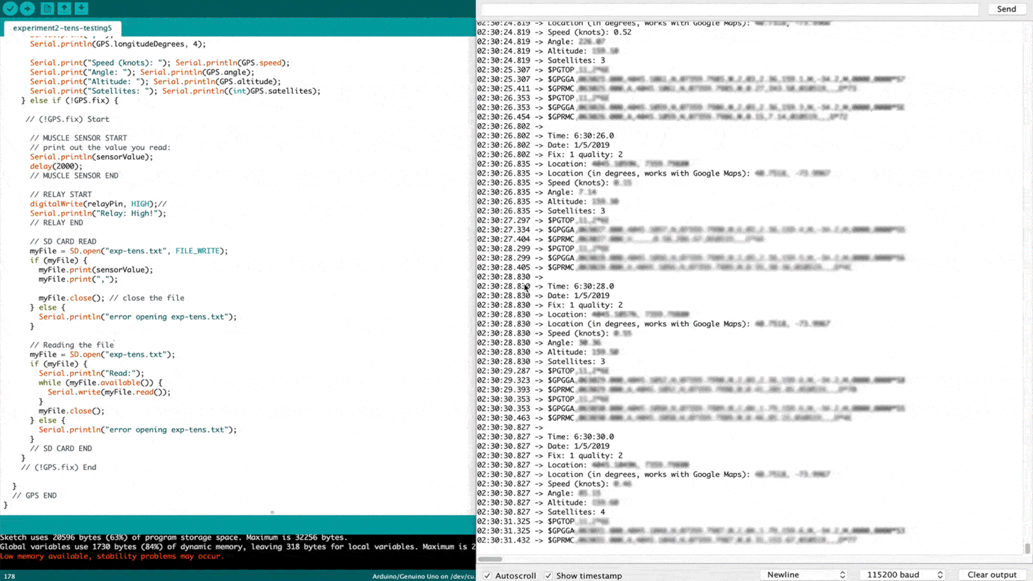 Results from Sensors (Saved to CSV file in SD Card)